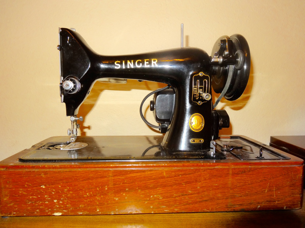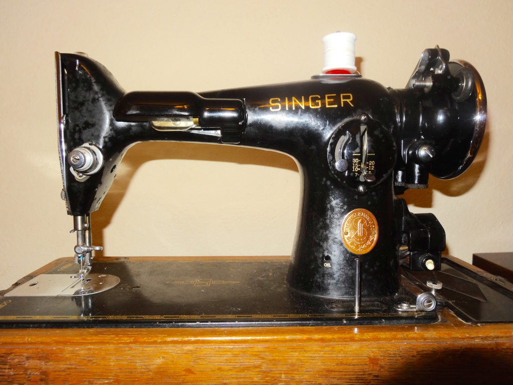 My 201K Singer was manufactured on December 12, 1936 in Kilbowie, Scotland. This is another machine I purchased at an auction from a company that imports crates of goods from England. The bentwood case needs a little TLC, but the machine is in near mint condition. I was caught up in the moment and awed by the beauty of this machine and never thought about its 220 volt motor. I will be getting a converter so I can use this machine. The 201 is known to be a workhorse that can easily sew things like multiple layers of leather and thick fabrics such as heavy denim seams with great ease. It has been said it is the best straight-stitch machine ever made. It has a slot for a knee control in the base. However, it didn’t come with the machine. Once again, I will be experiencing the thrill of the hunt for the knee control.