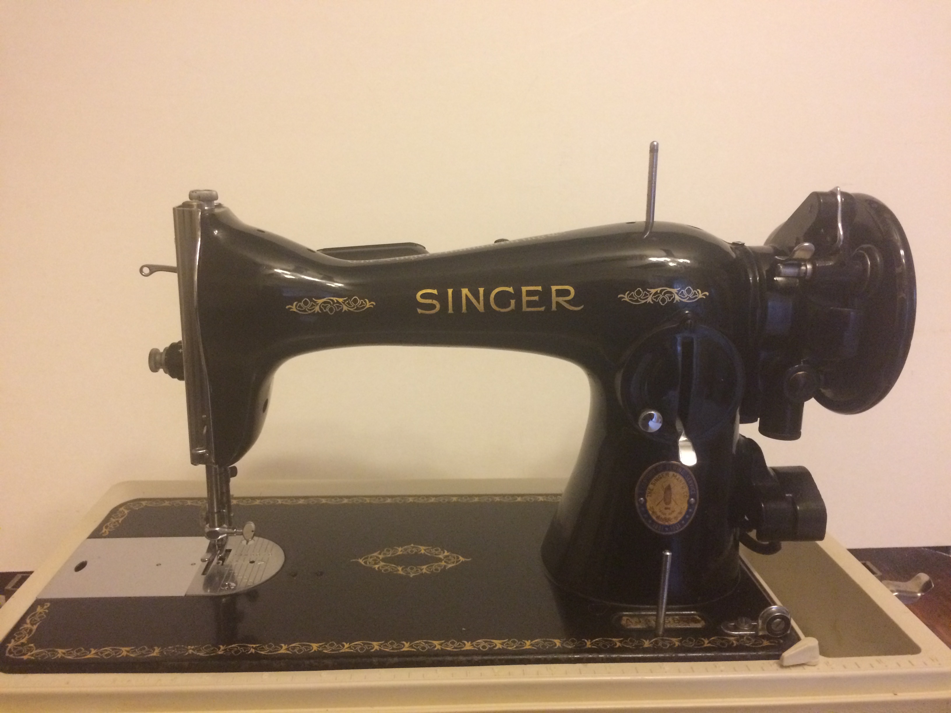 This was my first vintage machine.  What I love most about it is that it is simple and so easy to sew on.  The only thing that has ever happened to it is the carbon brushes wore down because I used it so much.  This machine and I are one.  I love a lot of different machines, but this one is part of me.